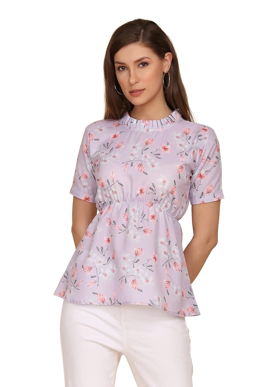 • Trendy Short Sleeves Top – Designed with statement short sleeves for a chic. feminine look.